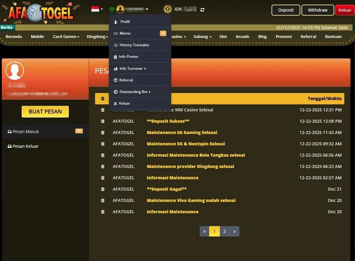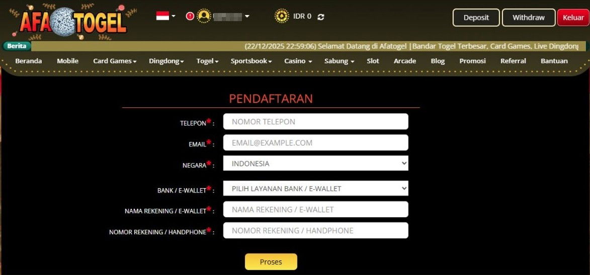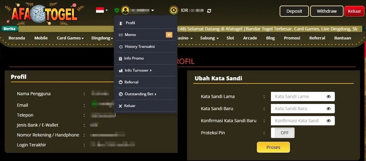 Bagaimana cara tarik dana atau withdraw di AFATOGEL?
