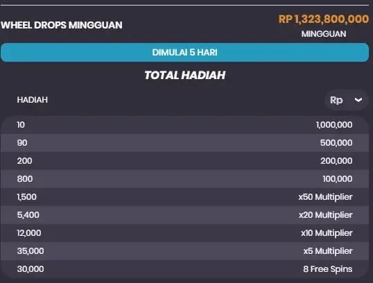 Syarat dan Ketentuan Wheel Drops Mingguan :