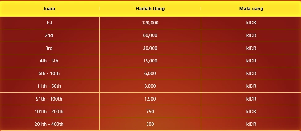 -. Pencapaian turnover 1.000.000.001 – 999,999,999,999 akan mendapatkan bonus chips 100% dari fee turnover.